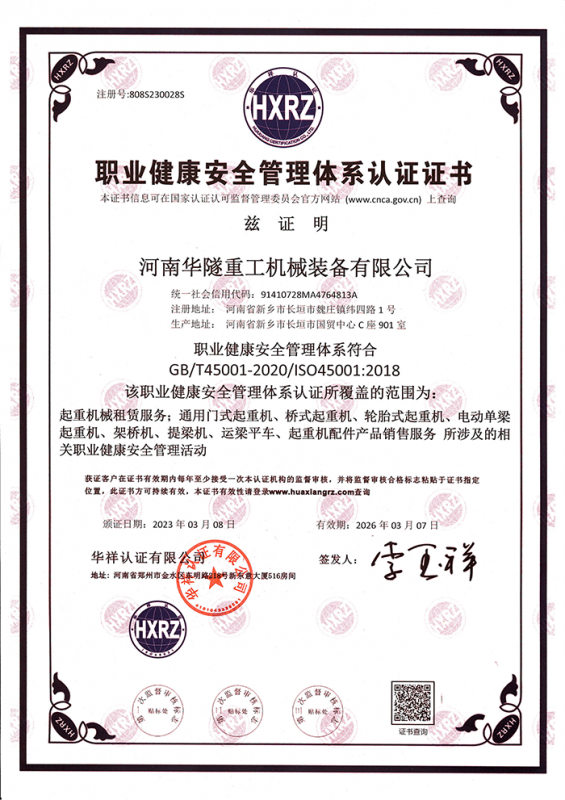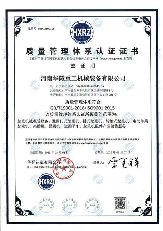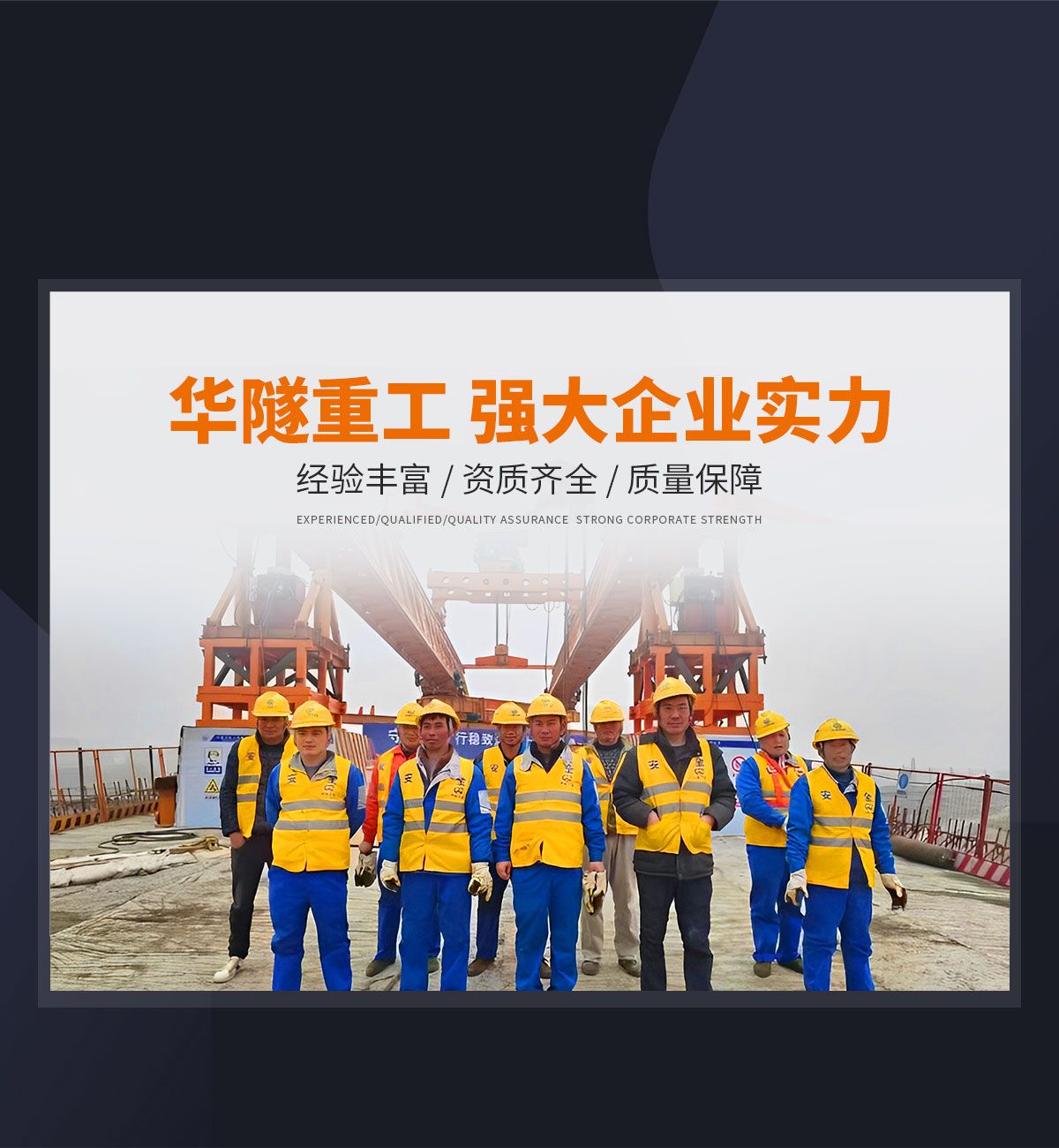 河南華隧重工機(jī)械裝備有限公司主要從事通用門(mén)式起重機(jī)、橋式起重機(jī)、電動(dòng)單梁起重機(jī),輪胎式起重機(jī)、架橋機(jī)、提梁機(jī)、遠(yuǎn)梁平車(chē)、鋼絲繩電動(dòng)萌蘆、卷?yè)P(yáng)機(jī)、起重配件制造、銷(xiāo)售:起重機(jī)械租賃、安裝和維修,起重設(shè)備園收,機(jī)械設(shè)備維修,鋼結(jié)構(gòu)工程承包,橋梁工程及技術(shù)咨淘服務(wù),銷(xiāo)售五金制品、機(jī)電設(shè)備:建設(shè)工程監(jiān)理,建設(shè)工程設(shè)計(jì),各類(lèi)工程建設(shè)活動(dòng),建筑勞務(wù)分包,建筑物折除作業(yè),施工作業(yè),工程管理服務(wù),土石方工程施工,裝如發(fā)運(yùn)。  公司已通過(guò)IS0國(guó)際質(zhì)量、環(huán)境、健康與安全三合一標(biāo)準(zhǔn)認(rèn)證,特種設(shè)備制造許可證和特種設(shè)備安裝改造維修許可證。擁有完熟的質(zhì)量管理體系。嚴(yán)格的管理制度,強(qiáng)大的生產(chǎn)能力和先進(jìn)的檢測(cè)手段,在保證產(chǎn)品質(zhì)量的同時(shí),也具備了極強(qiáng)的市場(chǎng)競(jìng)爭(zhēng)力。  公司堅(jiān)持科技創(chuàng)新為理念,產(chǎn)品質(zhì)量為核心,注重信譽(yù),建立了減信可靠、快捷、思速。便利周到的售后服務(wù)網(wǎng)絡(luò)。  我們擁有的技術(shù)專(zhuān)家和技術(shù)服務(wù)隊(duì)伍為客戶(hù)提供充善的售前技術(shù)支持和全天候的售后服務(wù)體系,讓您無(wú)后顧之憂,享受一站式的超值服務(wù)。  “華隧重工,伴您成功“是華隧重工永遠(yuǎn)的宗指,真被的希望與各界朋友攜手并進(jìn)。共創(chuàng)輝準(zhǔn)!